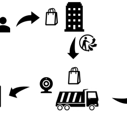 Storyboard : La mairie distribue des sacs poubelles transparents personnalisés à chaque appartement. Ces sacs sont transparents. Les détaillants ne peuvent vendre que des sacs poubelles transparents, personnalisés selon les standards de la Mairie. Les familles occupant les appartements d’immeubles ou les maisons individuelles utilisent ces sacs pour mettre leurs ordures.